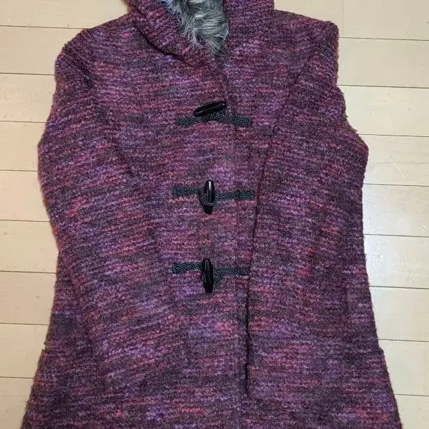 크림슨 계열 퍼 달린 더플 코트 (트위드 조)