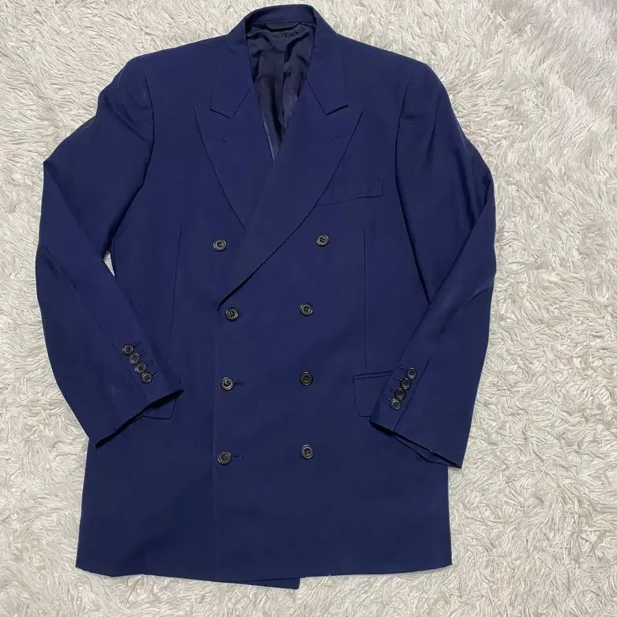 자켓 프론트는 더블 6버튼 2개 잠금, 사이드 벤트 사양입니다. 소매는 4개 버튼으로 본 절단 사양입니다.