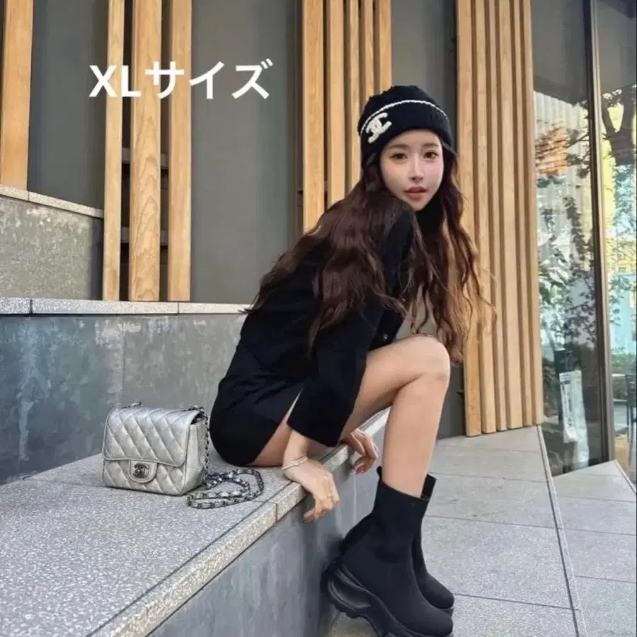 적당히 핏되고 신축성 있는 니트 소재를 사용한 어퍼, 볼륨감 있는 통굽 밑창으로