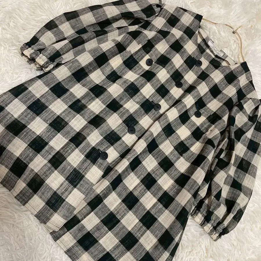 Leilian 체크 무늬 린넨 블라우스 베이지 13 호 내추럴 버튼