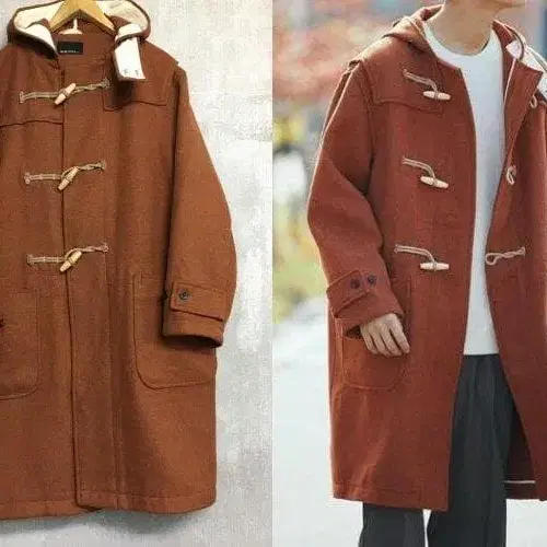 애로우즈 방한 두꺼운 원단 멜톤 더플 코트 오렌지 계열 사이즈 L
