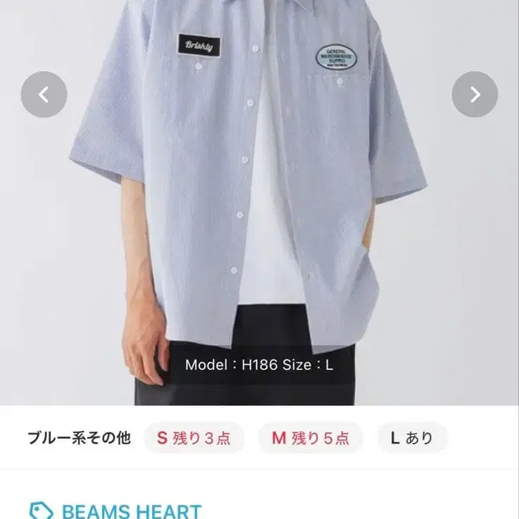 BEAMS HEART GMS 스트라이프 옥스 워크 셔츠 M 사이즈