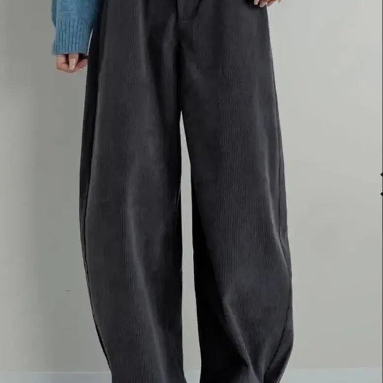 코듀로이 배럴 레그 팬츠 차콜 그레이 L