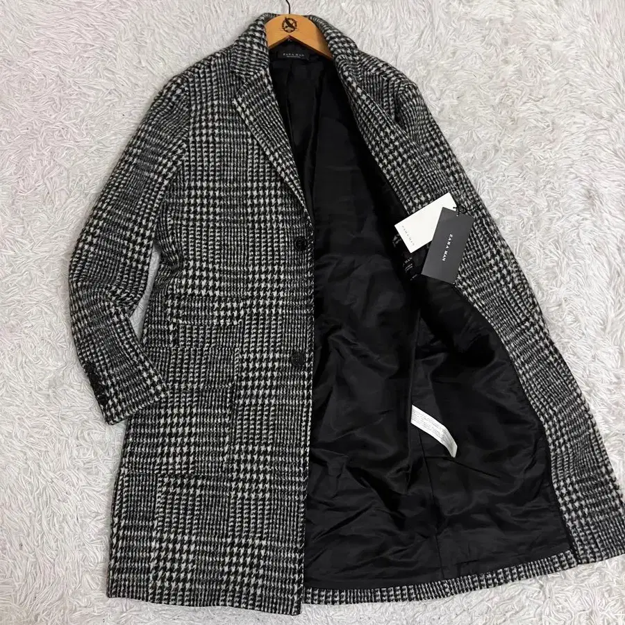 미사용 택 ZARAMAN 체스터 코트 울 트위드 대형 하운드투스 패턴 M