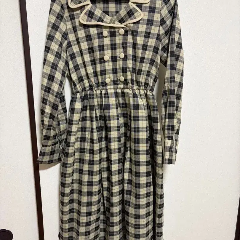 Fint 체크 무늬 긴팔 무릎 기장 원피스