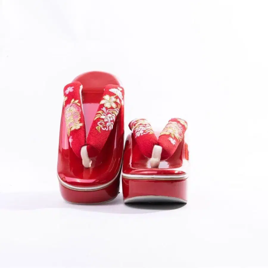 힐 조리 여성용 자수 벚꽃 통굽 후리소데 성인식 졸업식 조리 단품 레드
