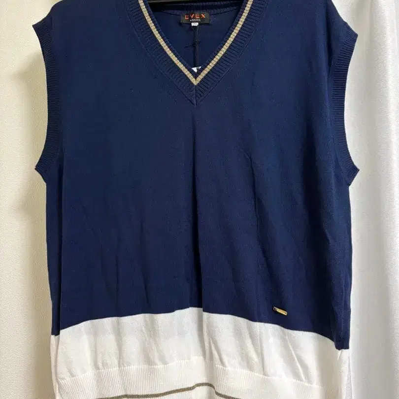 택 포함 새상품! 정가 2만 EVEX 네이비 화이트 V넥 니트 베스트
