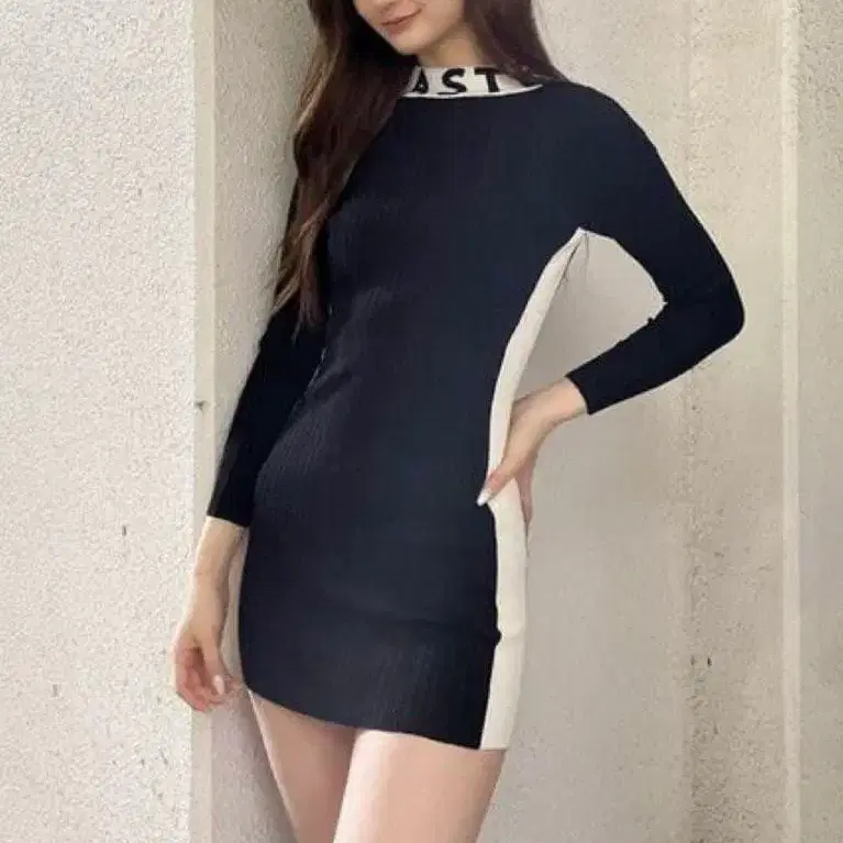 A+TOKYO 하프 지퍼 컬러 블록 니트 원피스 CITY TOKYO