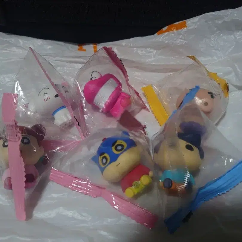 애니메이션 캐릭터 피규어 3개 세트, 지퍼백에 담겨 있어 컬렉션으로 최적입니다.