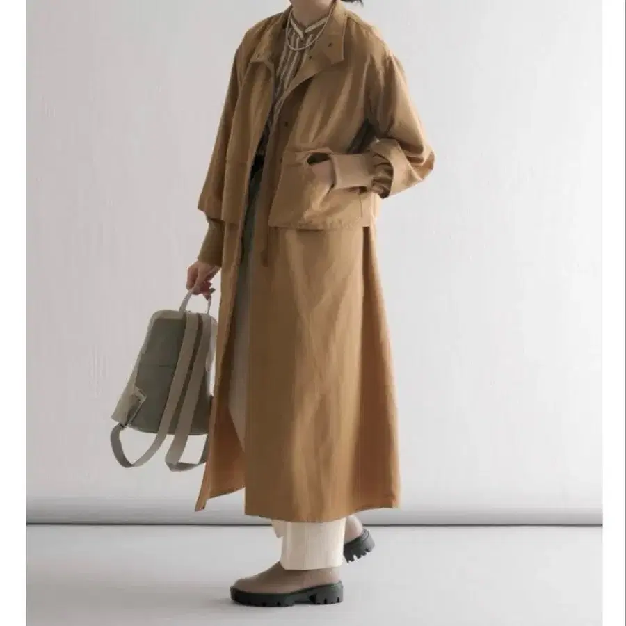 말 자수 장식 레이어드 스타일 코트 (먹색 스타일)