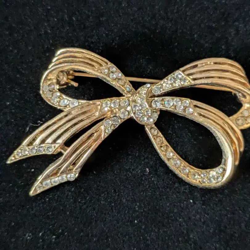 리본형 브로치 골드 컬러 크리스탈풍 새상품, 미사용!