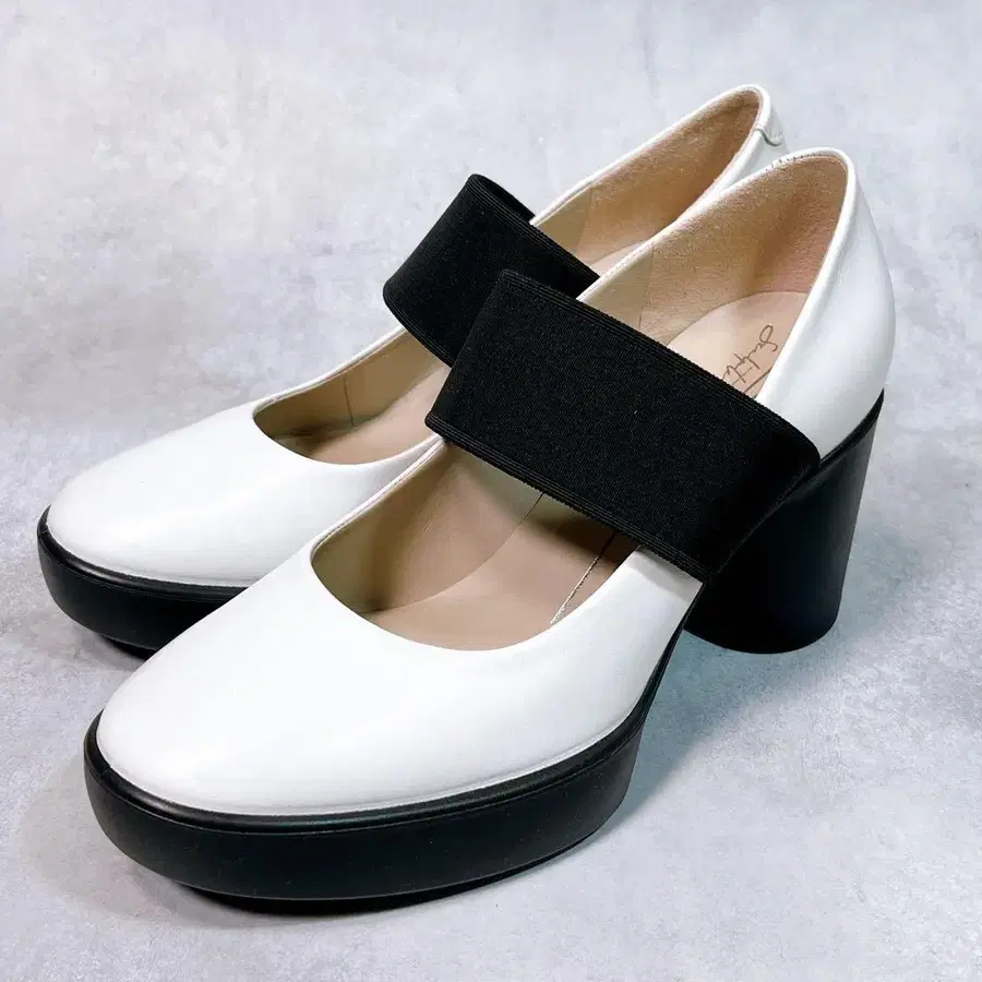 미사용급 [에코] 펌프스 (35) 스트랩 가죽 라운드토 화이트