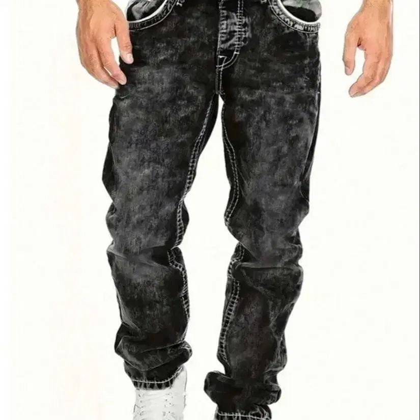 블랙 데미지 데님 팬츠