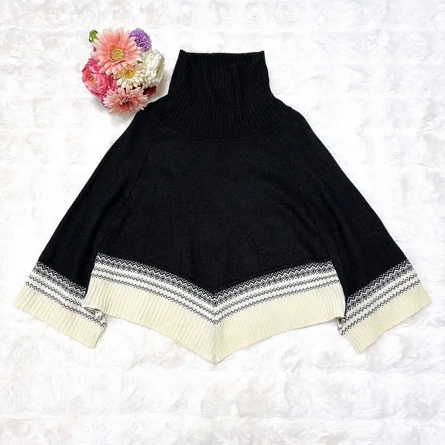 Clumsy 클램지 노르딕 무늬 터틀넥 니트 판초 블랙 화이트 M