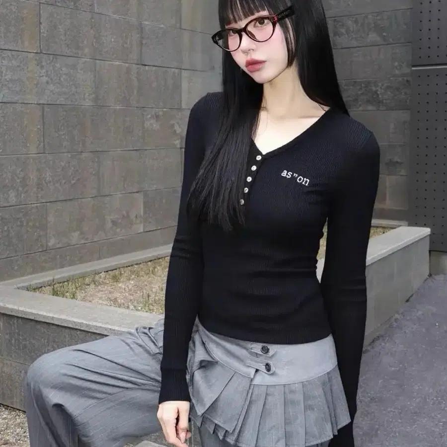 ason 블랙 긴팔 T셔츠 as'on