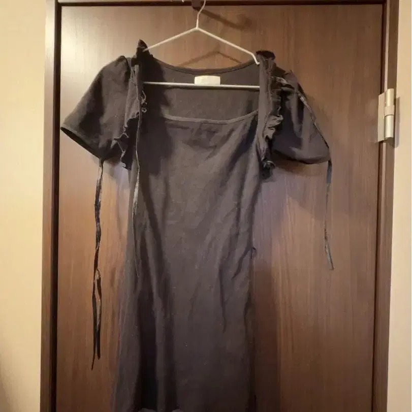 크로스 벨트 리브 컷 원피스 차콜 프릴 미니 원피스