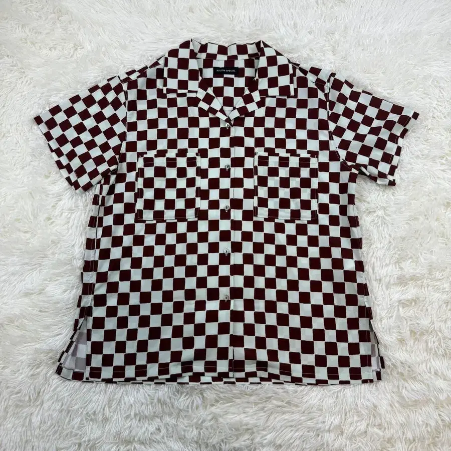 메종 스페셜 체크 무늬 깃발 오픈 카라 셔츠