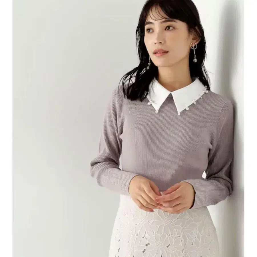 펄 장식 옷깃의 리브 니트