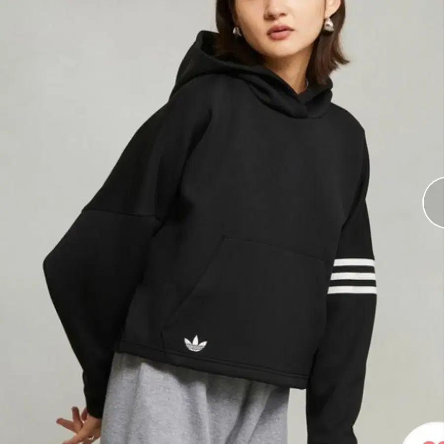 adidas 크롭 후드티 블랙 3라인