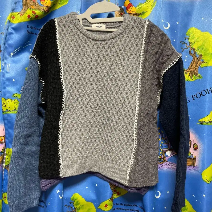 BEAMS HEART 다색 케이블 니트 스웨터 긴팔