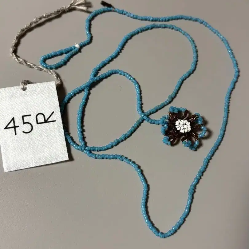 미사용에 가까움! 45R 앤티크 비즈 플라워 목걸이 터콰이즈