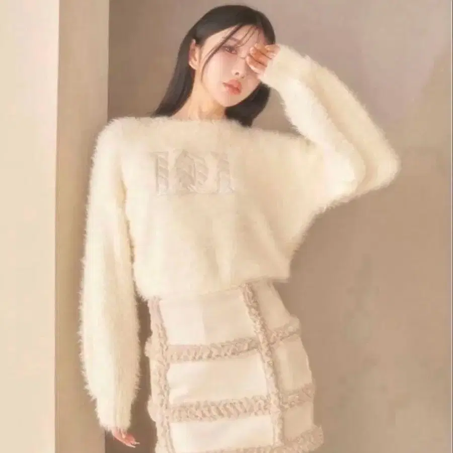 Darich 퀼트 로고 샤기 니트탑 아이보리