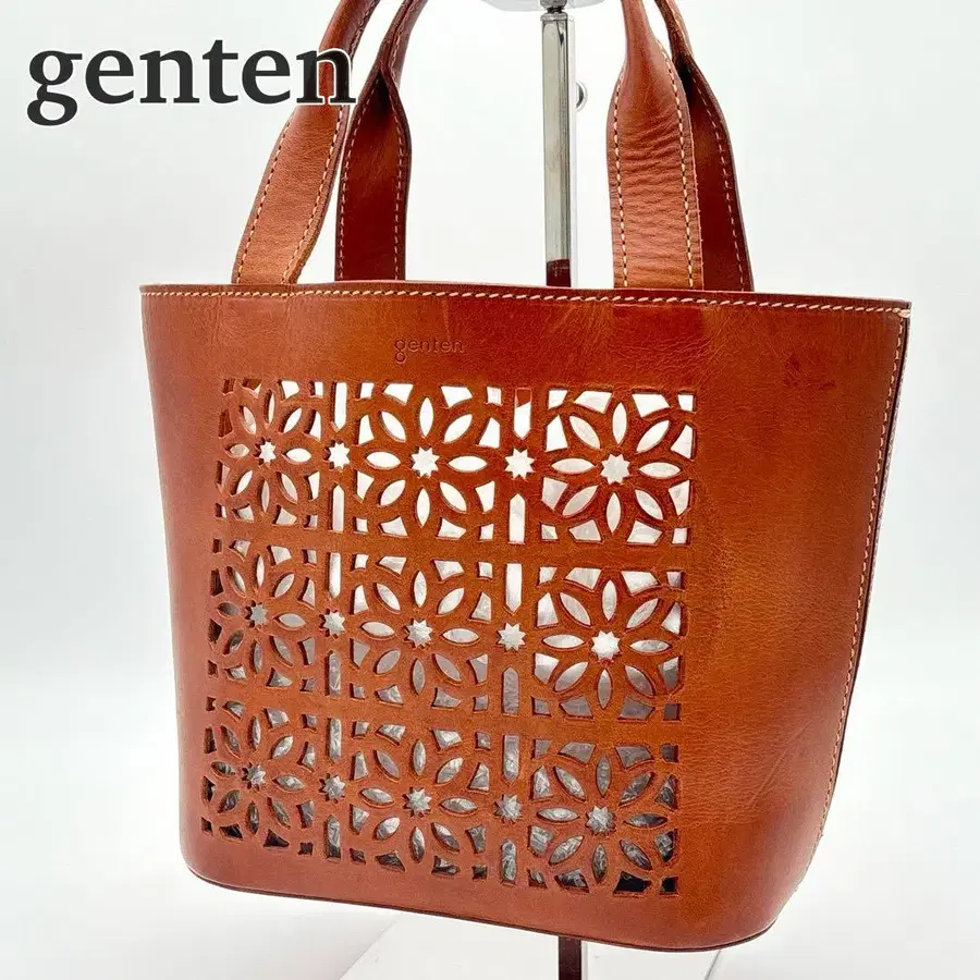 genten 겐텐 컷워크 미니 토트백 양동이형 가죽 천연 가죽