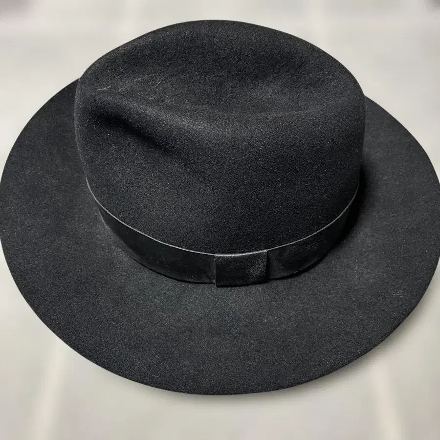 컬러 - 블랙 토끼털 펠트 모 100% 사이즈 3  ( 챙 8cm 높이 13cm ( 개인 측정 ) ) 2년 전쯤 새상품 구매. 집에서 보관 중입니다. 완전한 새상품이 아니라는 점 이해 부탁드립니다. 잘 부탁드립니다.