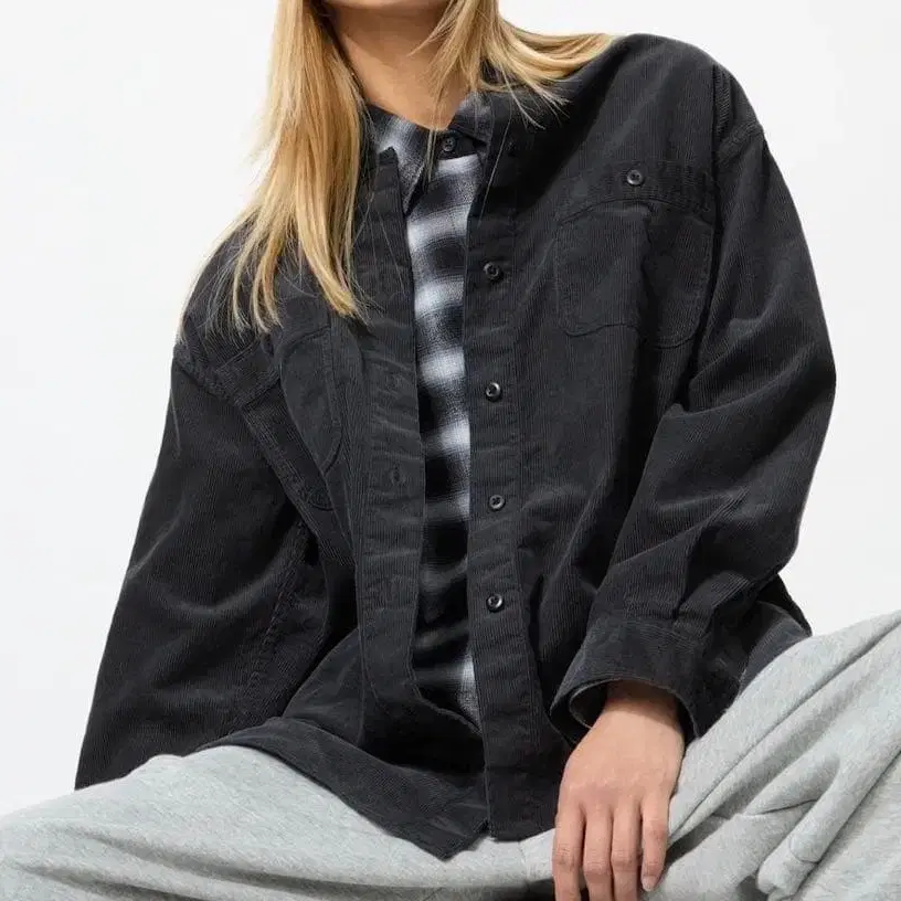 코듀로이 롱 셔츠 자켓 유니클로 블랙 L