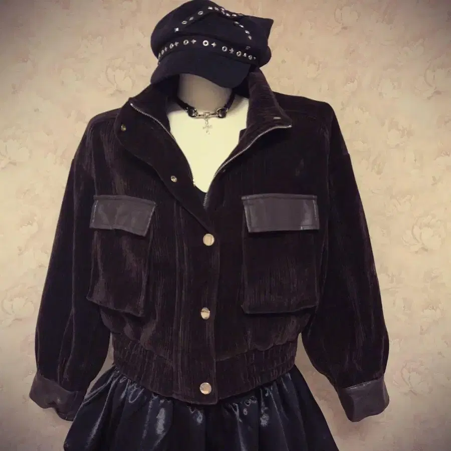 새상품급 Y2K 다크 브라운 코듀로이 크롭 자켓