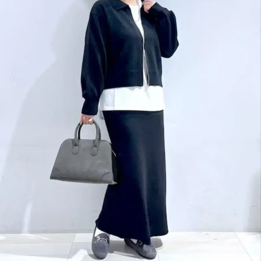 새상품 글로벌 워크 니트 ZIP 가디건, 스커트 셋업 블랙