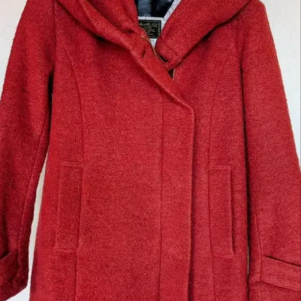 여성용 빨간색 후드 부착 울 코트 S 사이즈