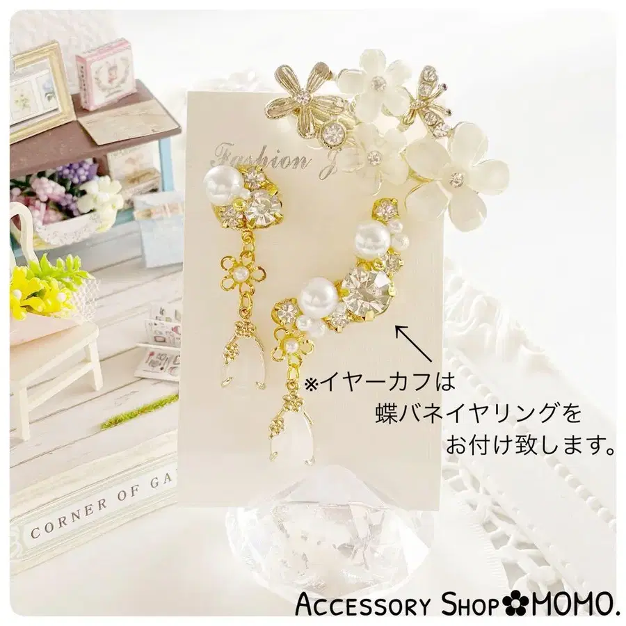 A급 유리 스톤 비즈 귀걸이 & 이어커프 대형 스톤 :*핸드메이드