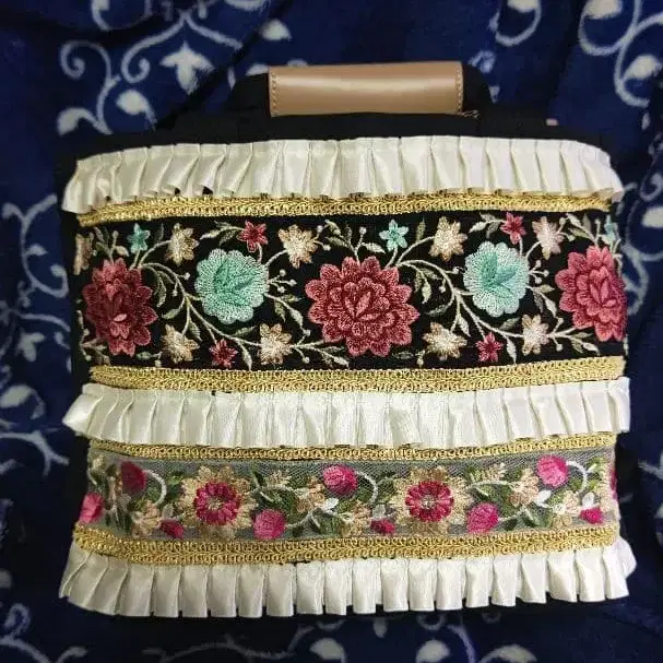 인도 자수 리본을 장식한 백입니다. 럭셔리한 디자인이 매력적이에요 (*^^)v ♥ 포켓이 많아 대용량이라 정말 편리합니다! ‼️ ▶ 크기는 가로 약 32cm, 깊이 약 15cm 정도입니다! (깊이는 물건을 넣으면 더 늘어납니다!) 칸막이가 안쪽에만 4개 있어서 잡화 등을 충분히 분류할 수 있어요(*´艸`) 그 외에도 포켓이 붙어 있습니다! 가지고 있으면 후회하지 않을 거예요! 필요한 잡화를 백 안에서 헤매지 않고 바로 꺼낼 수 있습니다! 펜 홀더 1개 포함! ▶ 손잡이 벨트는 천연 가죽으로 매우 튼튼합니다! ‼️ ▶ 숄더로도 핸드로도 사용 가능한 타입입니다! 다른 상품들도 많이 판매 중이니 구경해 주세요 ♪ #포프리의인도자수 ▶ 포장은 보증이 있는 유유 메루카리 택배, 라클라크 멜칼리 택배를 이용할 예정입니다 (*^^) ✨ 쿠션재, 종이상자 등을 사용하여 발송, 포장하지만 리사이클 소재이므로 이 점은 양해 부탁드립니다 ( ⁎ ᴗ͈ˬᴗ͈ ⁎ ) 잘 부탁드립니다! ⚠️⚠️⚠️ 또한, 핸드메이드 제품이므로 조잡한 부분도 있을 수 있지만 단순한 취미이므로 완벽을 추구하시는 분은 기성품을 구매해 주세요. 풀, 본드, 양면 테이프 등을 사용하였으므로 튀어나온 부분이 있을 수도 있지만 핸드메이드 제품이므로 잘 부탁드립니다. 인도 자수 핸드메이드 제품 핸드메이드
