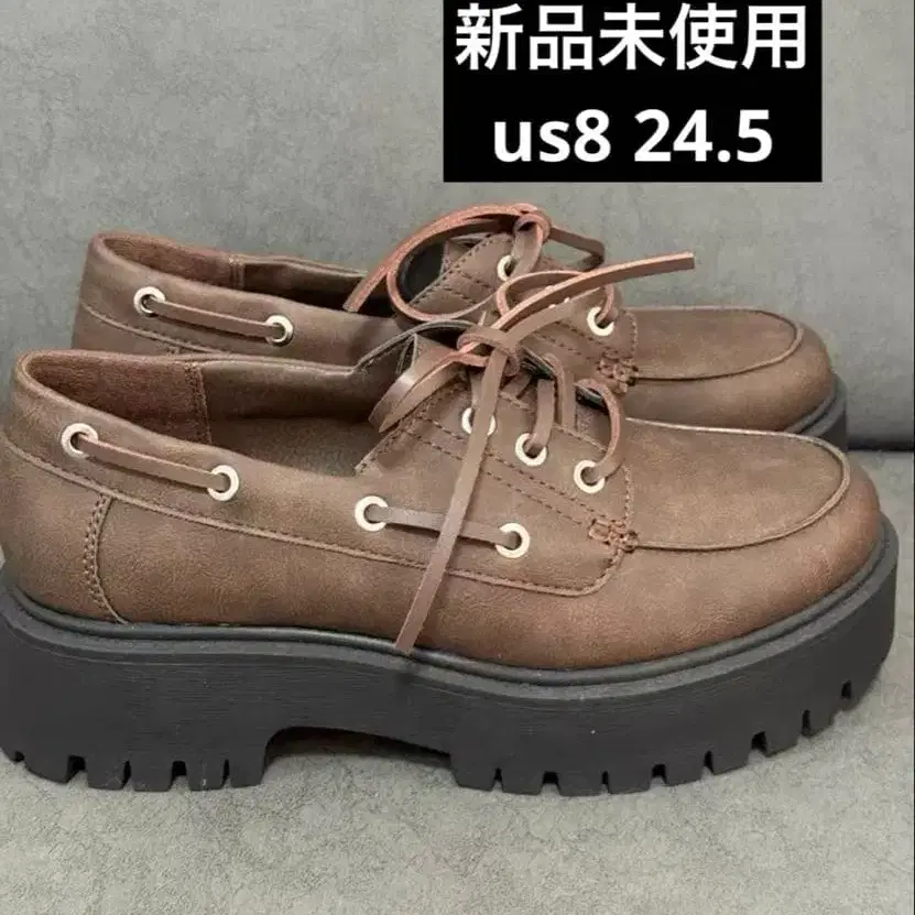레이스업 리지드 밑창 보트 플랫슈즈 통굽 브라운