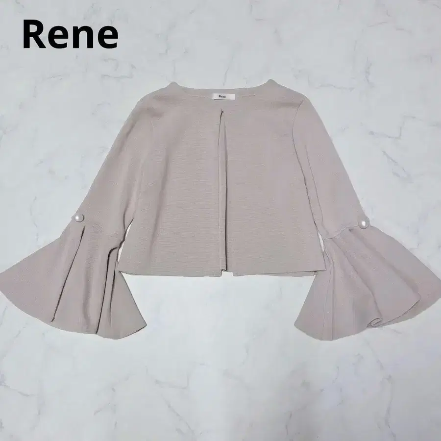 컨디션 최상 르네 펄 플레어 소매 노카라 자켓 베이지 S
