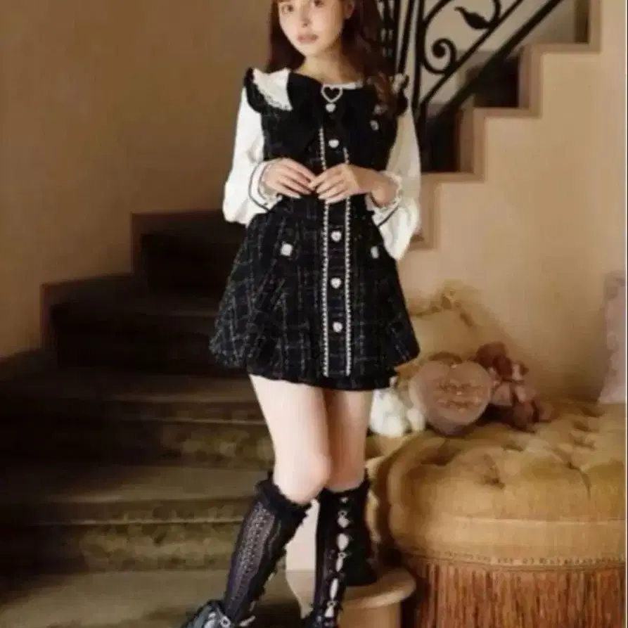 리즈리사 리본 트위드 셋업 블랙 LIZLISA