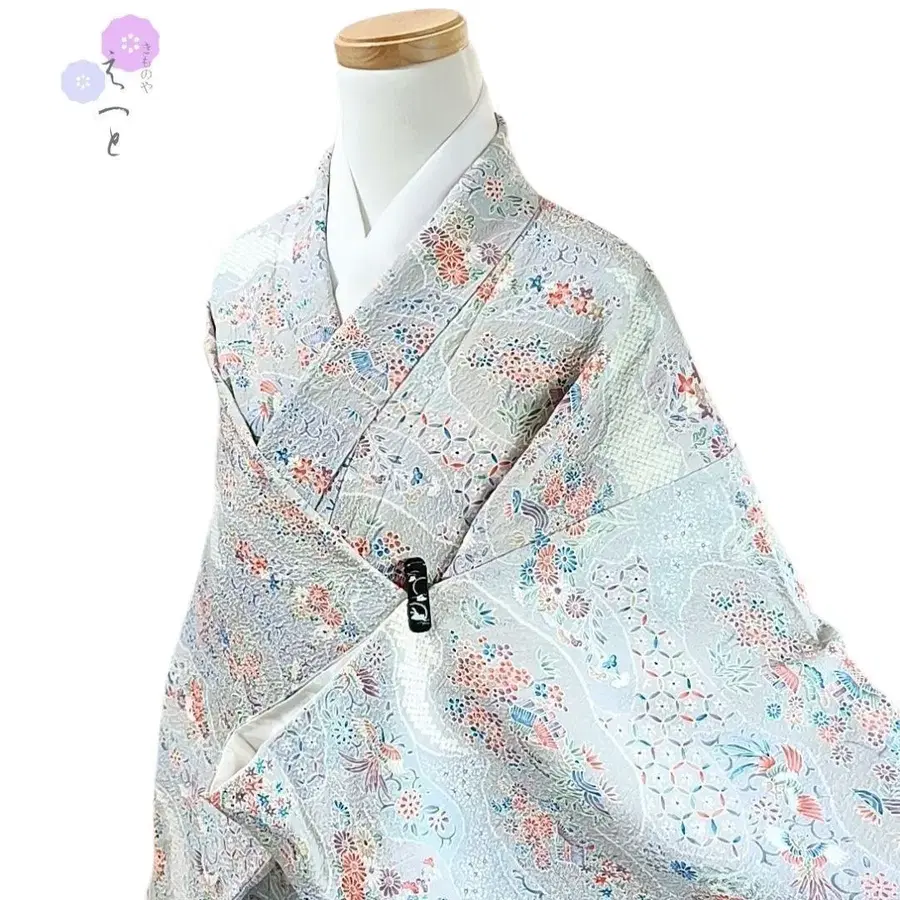 다섯 10 음 기모노 코몬 크레이프 원단 그레이 염색