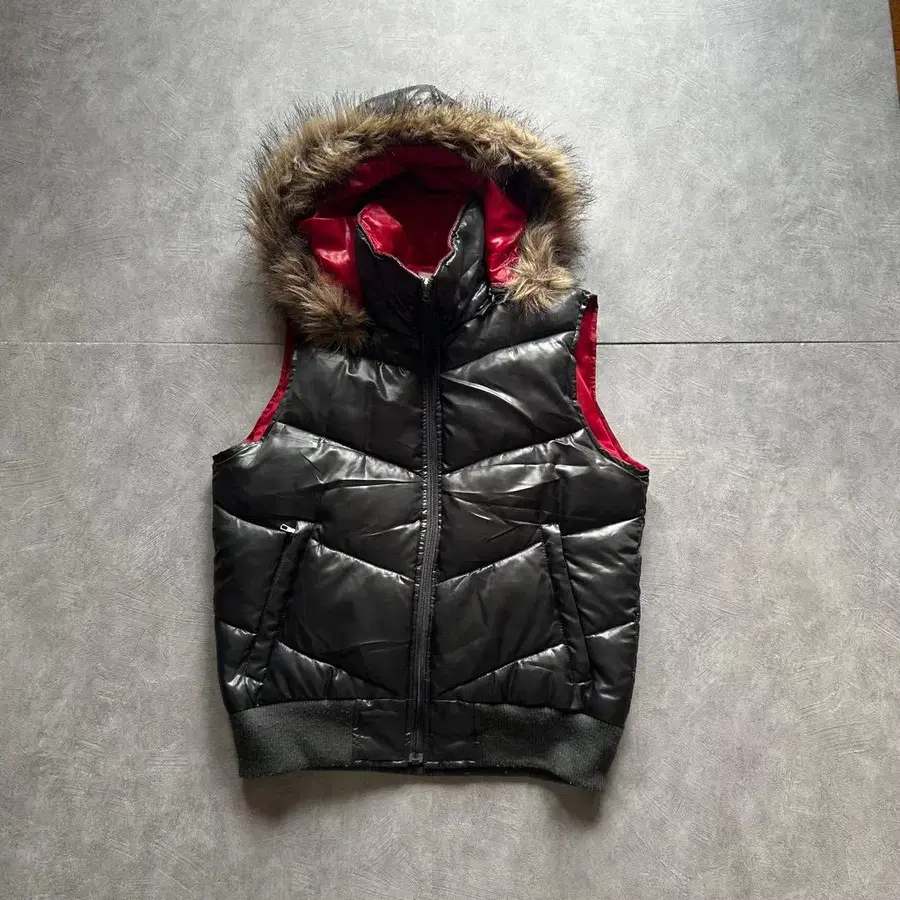 • 00s archive y2k 다운 베스트 퍼 짧은 기장 광택 갸루 남자