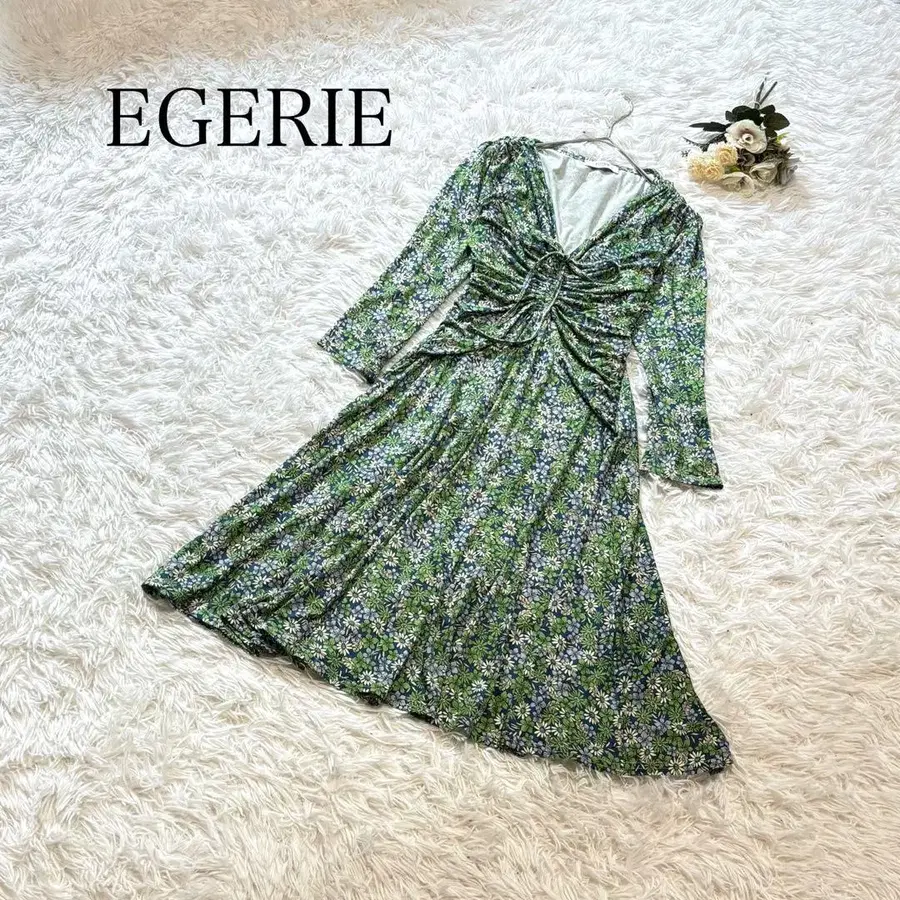 EGERIE 에제리 긴팔 원피스 꽃무늬 그린 루즈핏