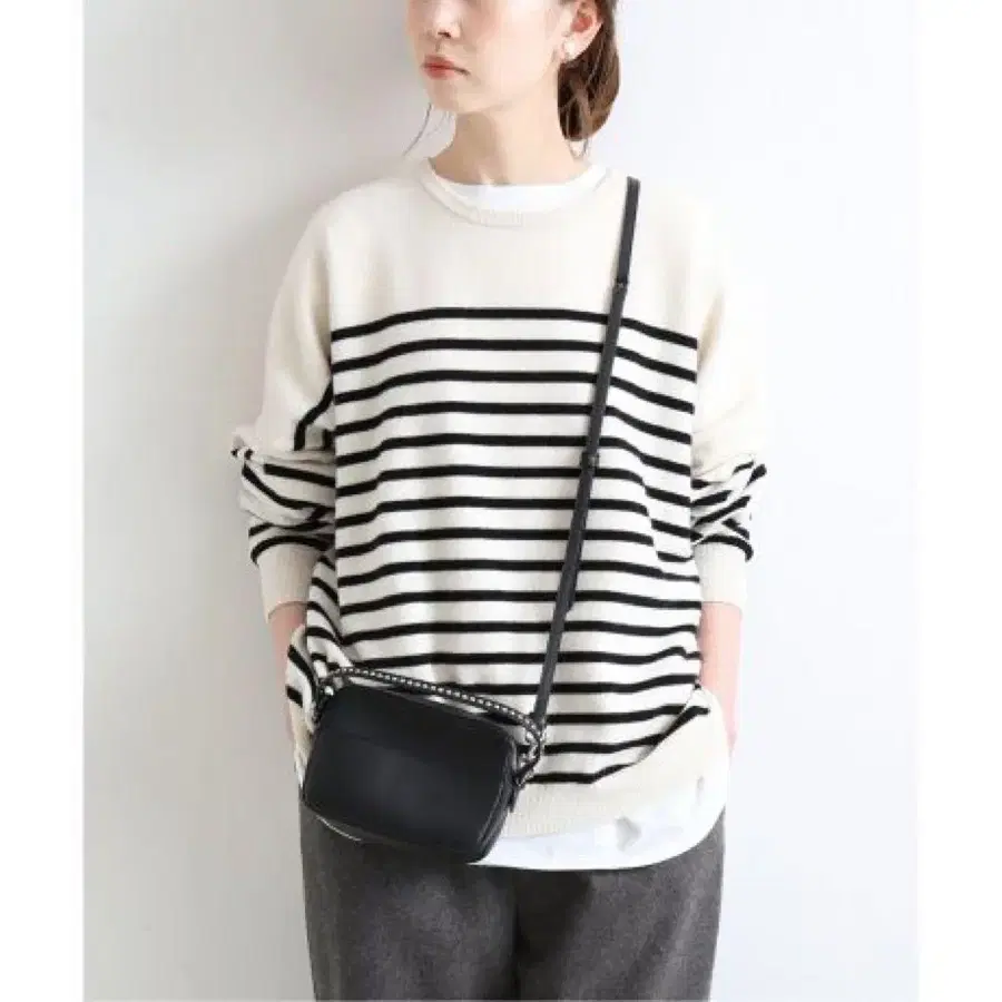 IENA 울 보더 크루넥 풀오버