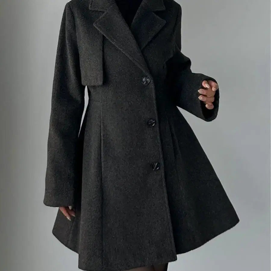 Louvere 노카라 다크 그레이 코트 S