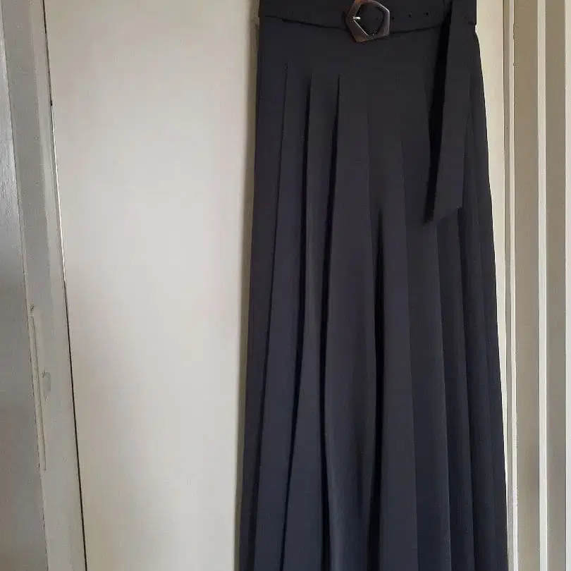 블랙 플리츠 큐롯 플레어 팬츠 벨트 포함
