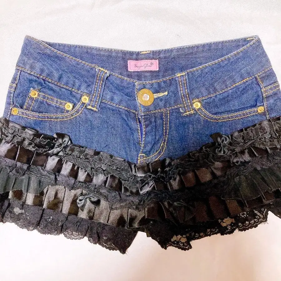 MARS sugar gross 레이스 프릴 데님 숏팬츠