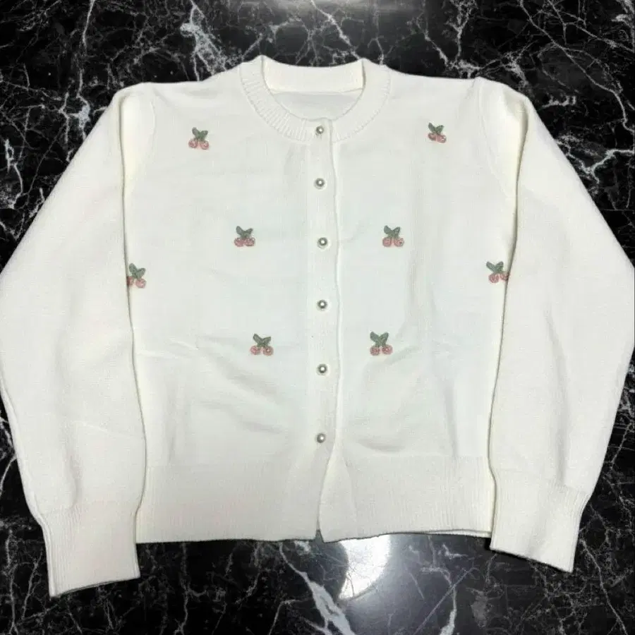 새상품 체리 패턴 페미닌 화이트 니트 가디건 핑크