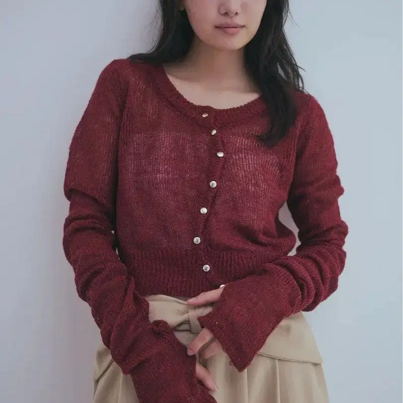 Andequal 웨이브 디자인 쉬어 니트 RED