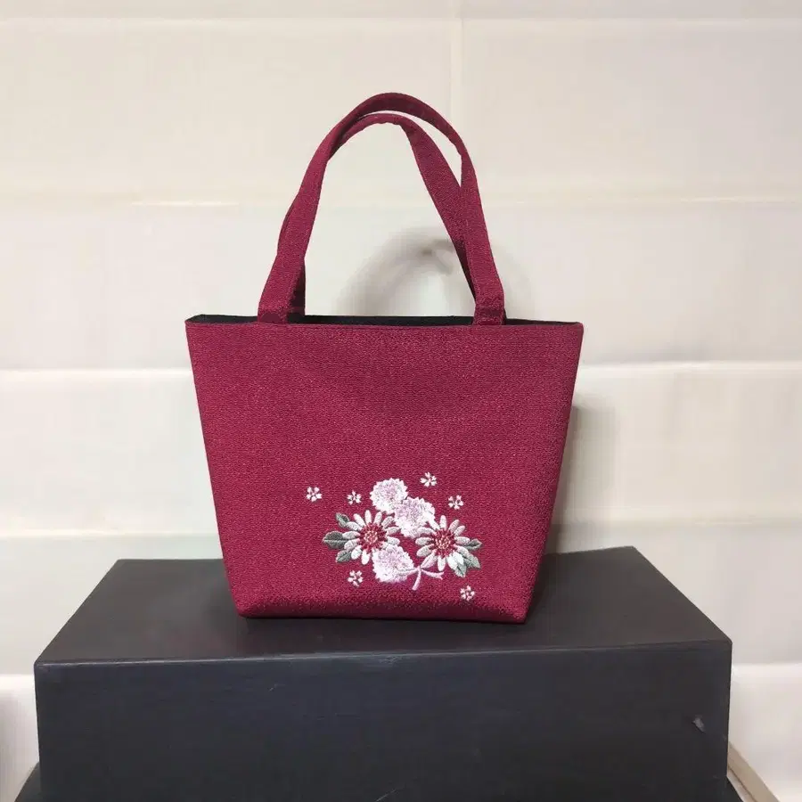 화려한 빨간색에 꽃무늬 자수 일본풍 꽃무늬 토트백