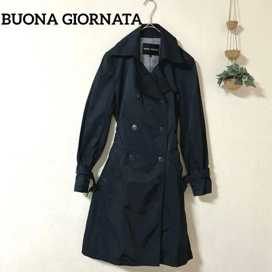 보나조르나타 트렌치코트 L 블랙 벨트 포함 나일론 면 안감 스트라이프