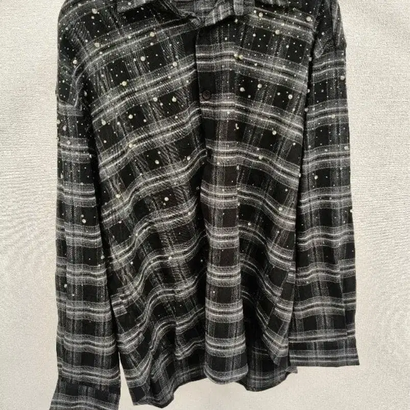 VYBES 큐빅 스팽글 체크 무늬 셔츠 빛나는 ZARA 스타일