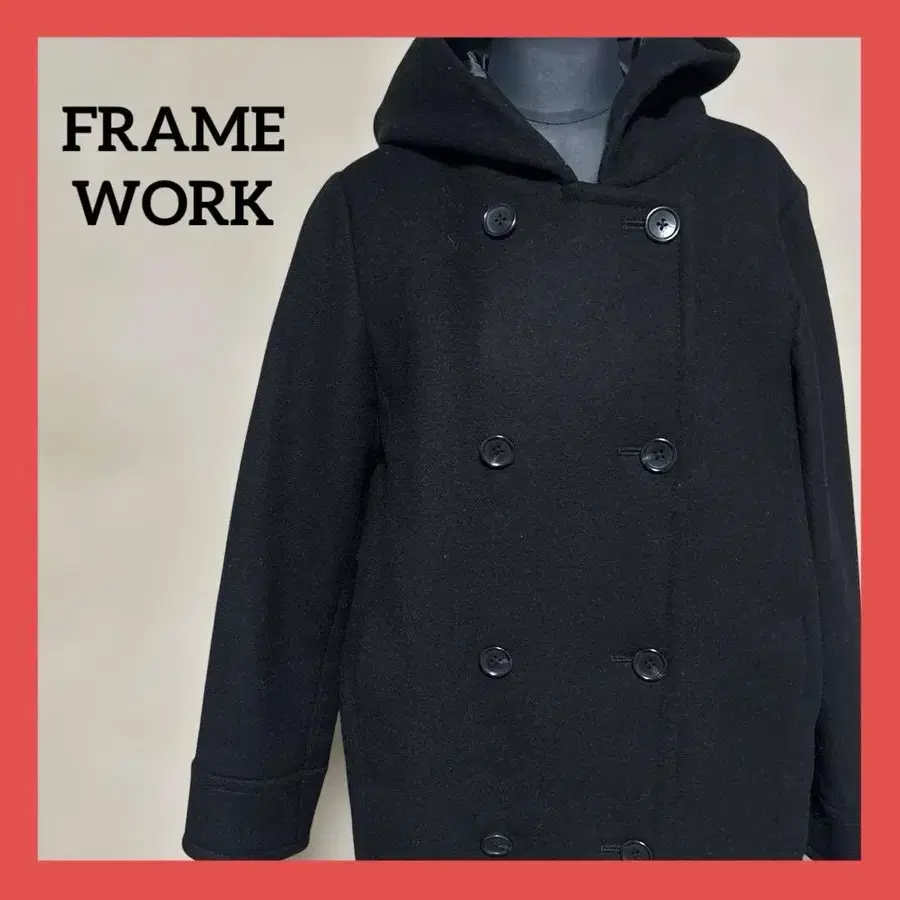 프레임워크스 후드 부착 더블 코트 울 블랙